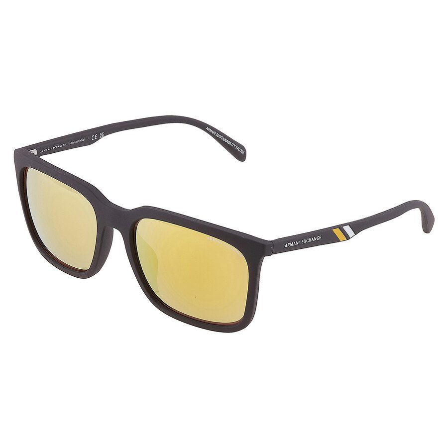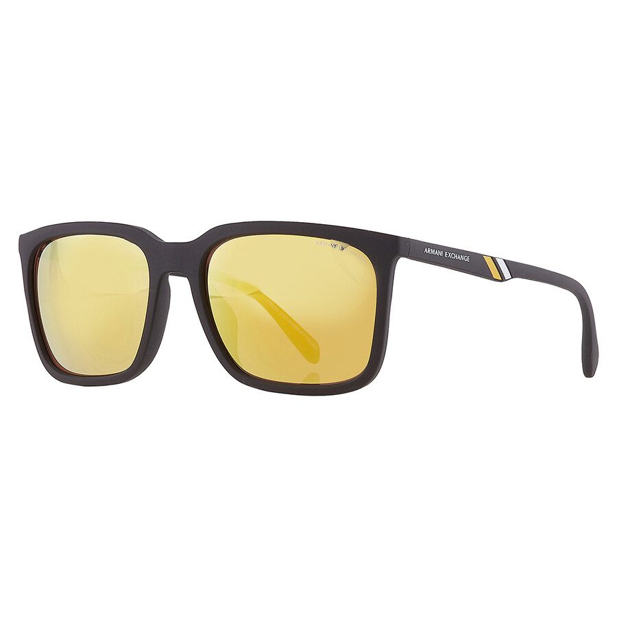 Gafas de sol Armani Exchange. Número de serie: AX4117SU. Código de color: 807873. Forma: Rectangular. Ancho de la lente: 57 mm. Puente de lente: 18 mm. Longitud del brazo: 145 mm. 100% de protección UV. Material del marco: Plástico. Color del marco: negro mate. Tipo de lente: Amarillo espejo. Estilo de llanta: Full-Rim. Código UPC/EAN: 7895653236059. Gafas de sol rectangulares amarillas con espejo Armani Exchange para hombre AX4117SU 807873 57.