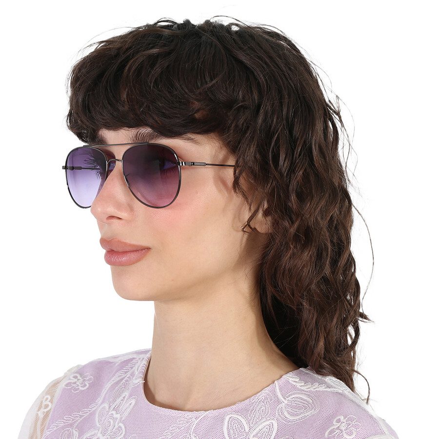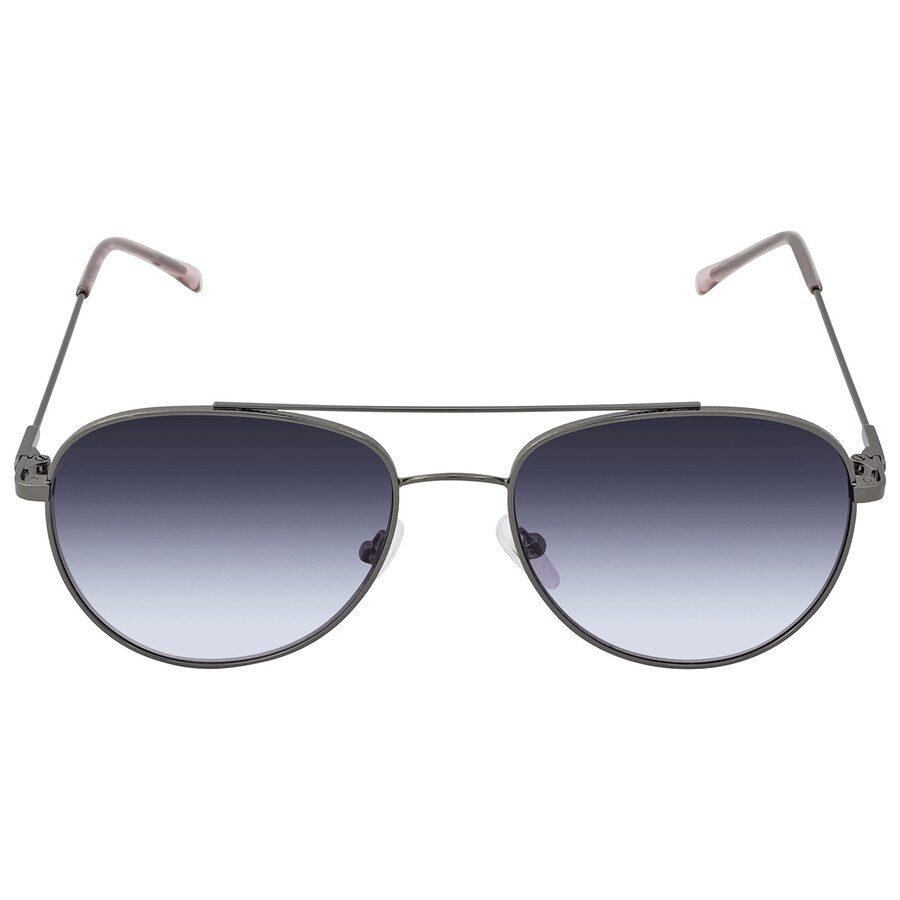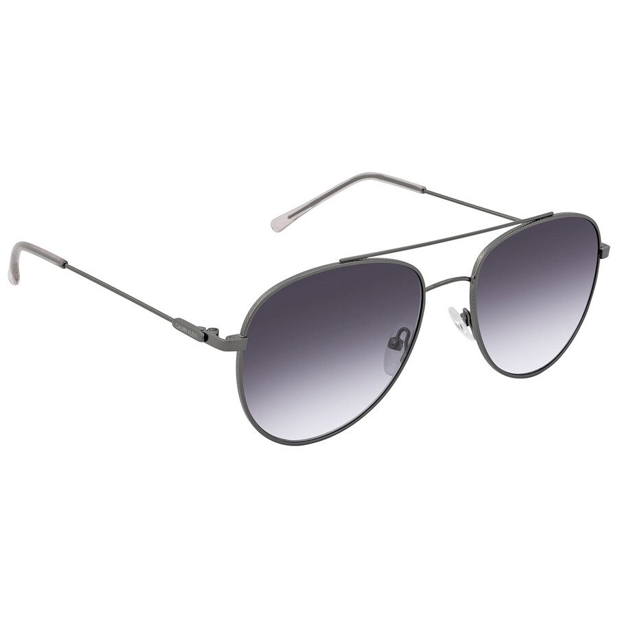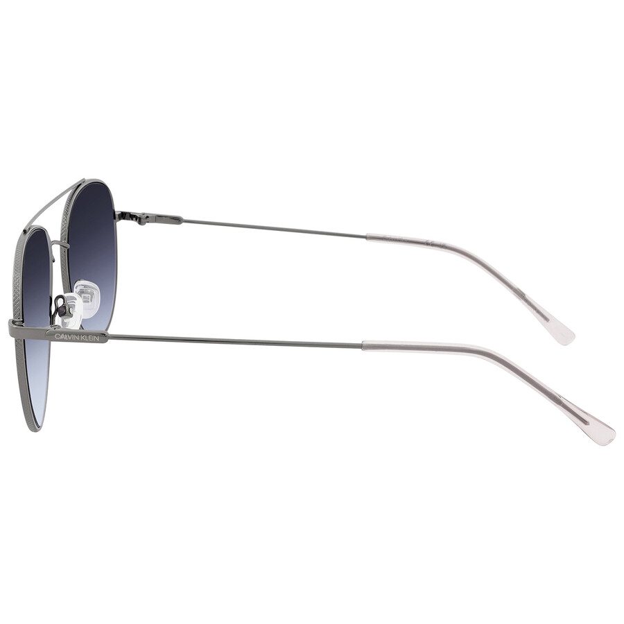Gafas de sol Calvin Klein. Número de serie: CK20120S. Código de color: 008. Forma: Aviador. Ancho de lente: 55 mm. Puente: 18 mm. Longitud de la patilla: 145 mm. Protección UV 100%. Material de la montura: Metal. Color de la montura: Gris plomo. Tipo de lentes: Azul degradado. Estilo de montura: Completa. Código UPC/EAN: 883901128130. Gafas de sol Calvin Klein para mujer, modelo CK20120S 008 55, estilo aviador, con lentes azules degradadas.